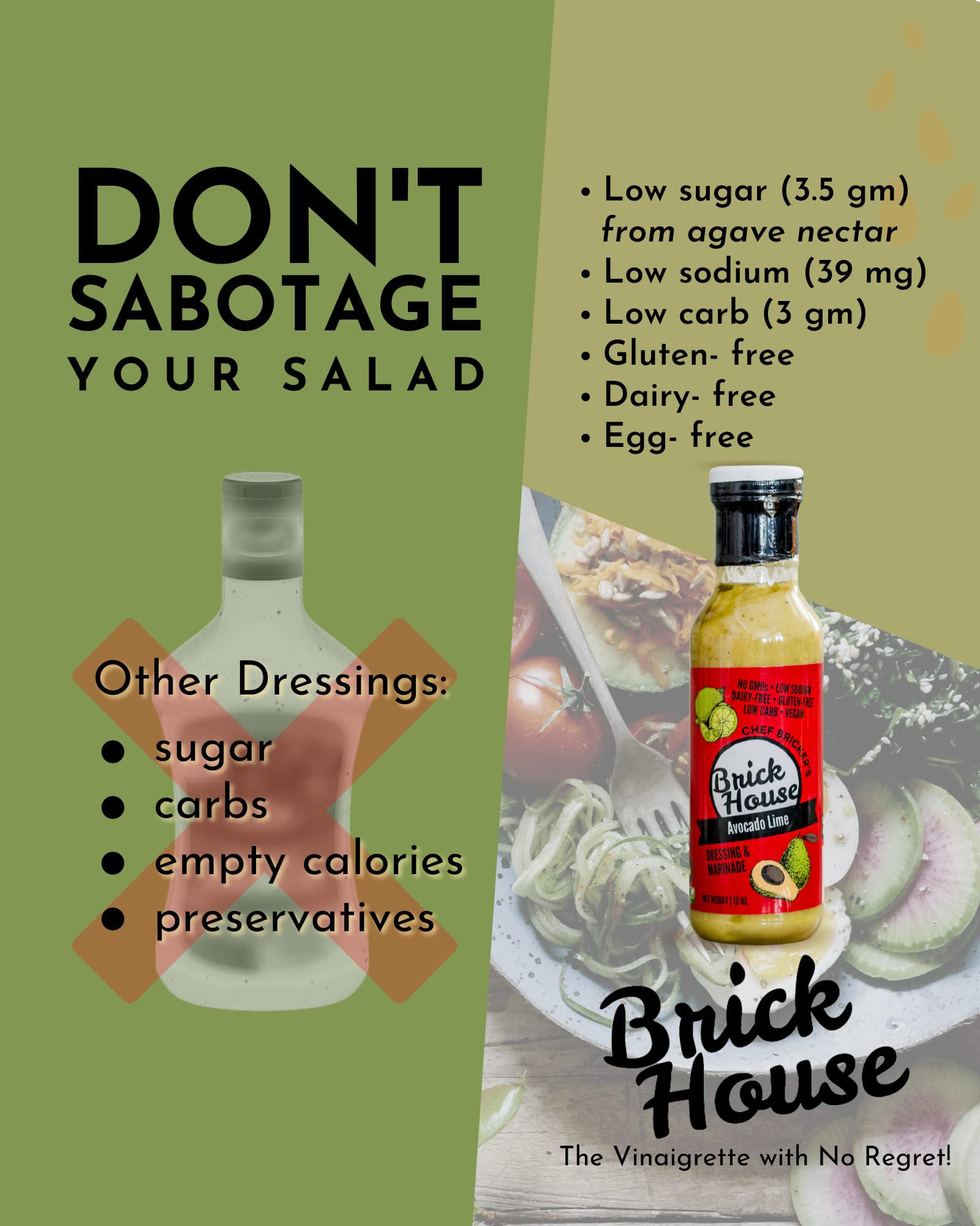 Amazon Com Avocado Lime Vegan Salad Dressing Marinade With Cilantro Crushed Red Pepper Keto Paleo Low Sodium Low Carb Low Sugar Low Calorie Gluten Free Dairy Free By Brick House